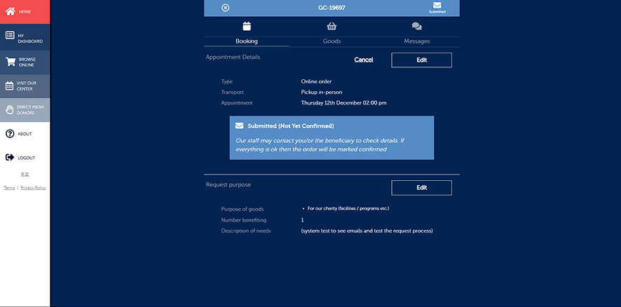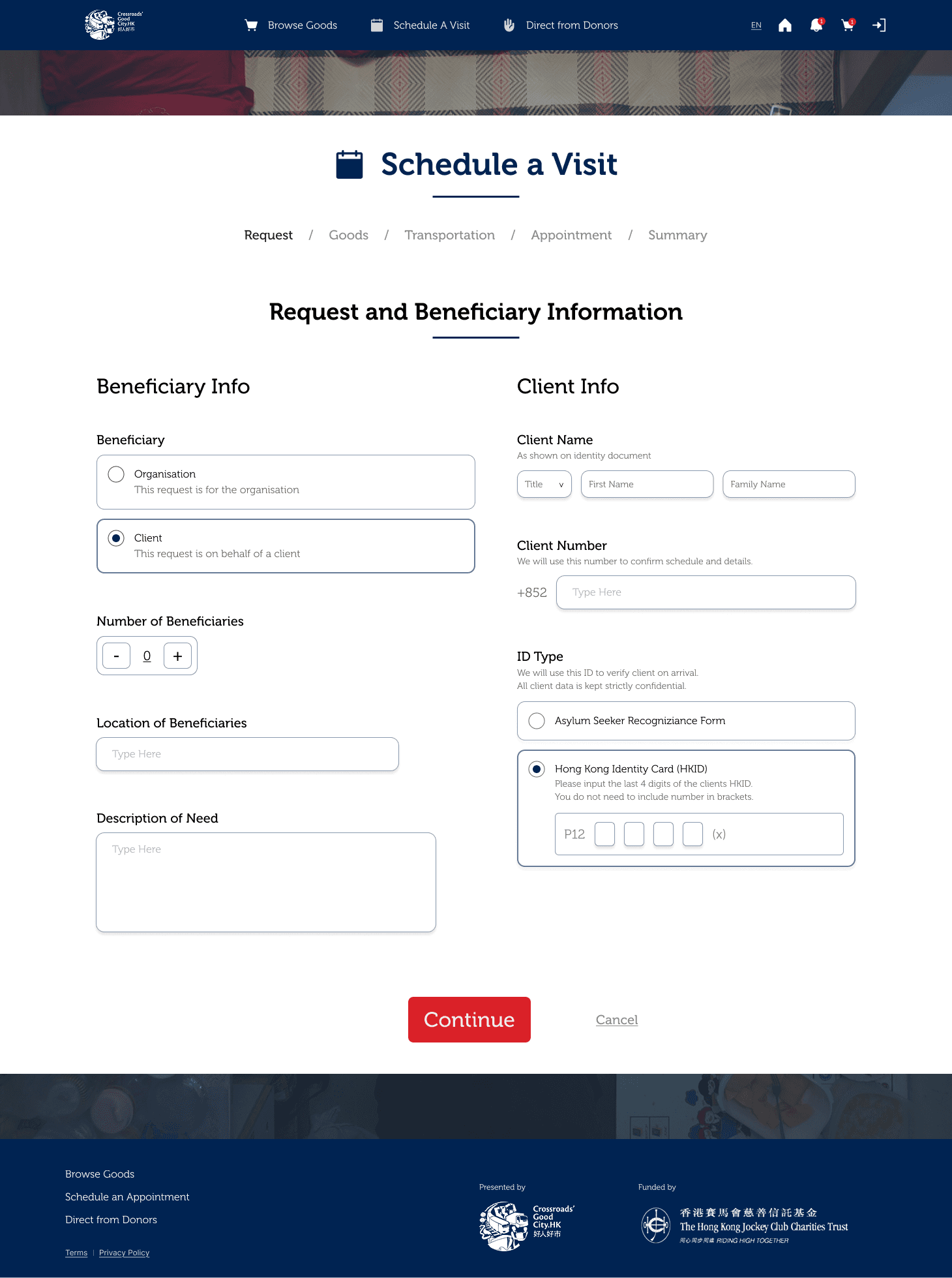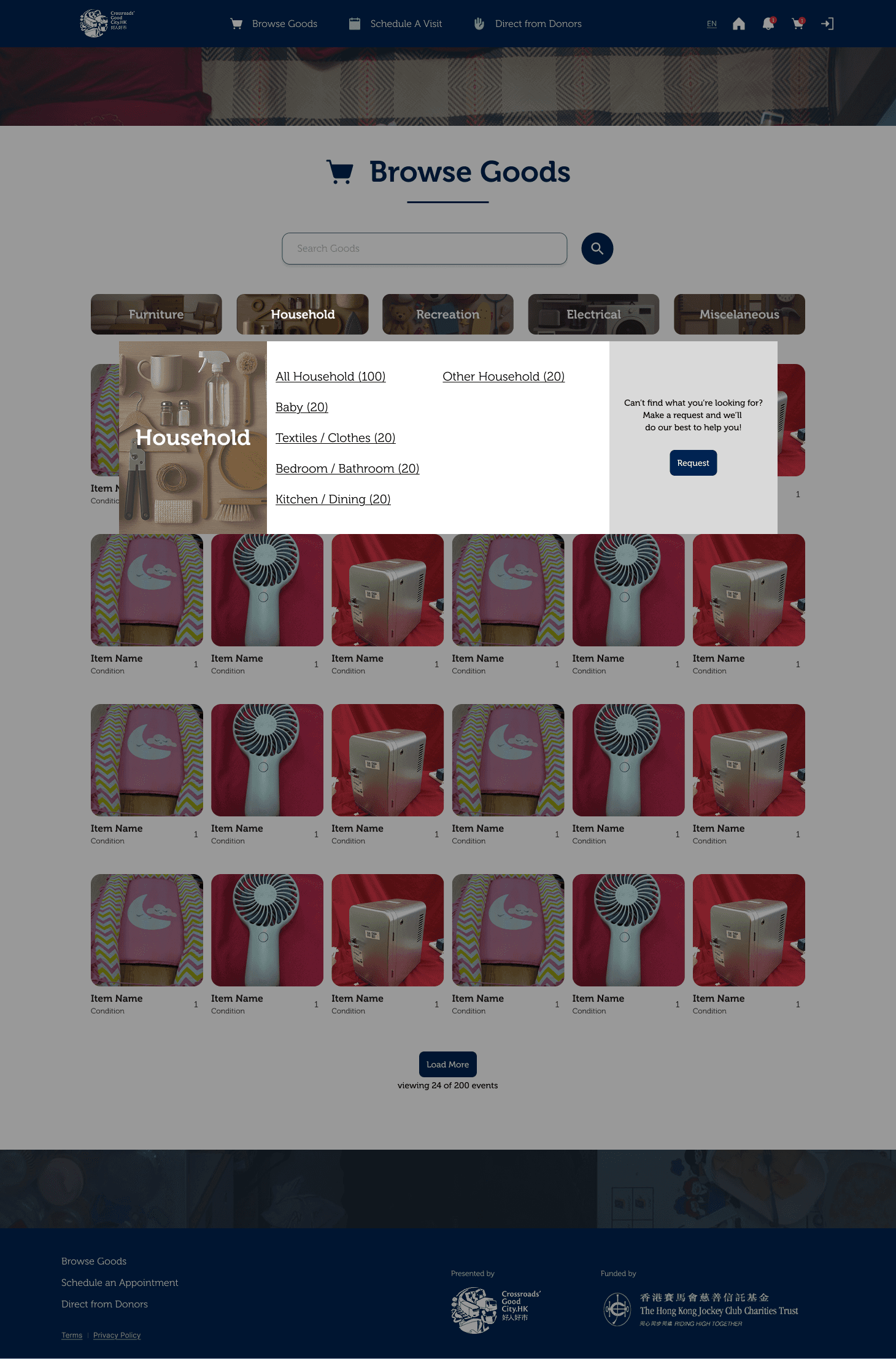 GoodCity for Charities is a website and app that connects social workers with donated goods for their clients. The website/app faced challenges with usability, navigation, and communication features, which hindered user satisfaction and efficiency. As the UI/UX designer, I conducted user research, identified key pain points, and implemented solutions to improve the interface, browsing process, and appointment booking workflows. The redesigned website/app, emails, and user flows now feature clearer navigation, better visual hierarchy, and streamlined processes, ensuring a more intuitive and user-friendly experience for all users. A design system was designed and implemendted to ensure smooth and consistent branding and visual design. This project is currently awaiting funding and the current website can be viewed at: